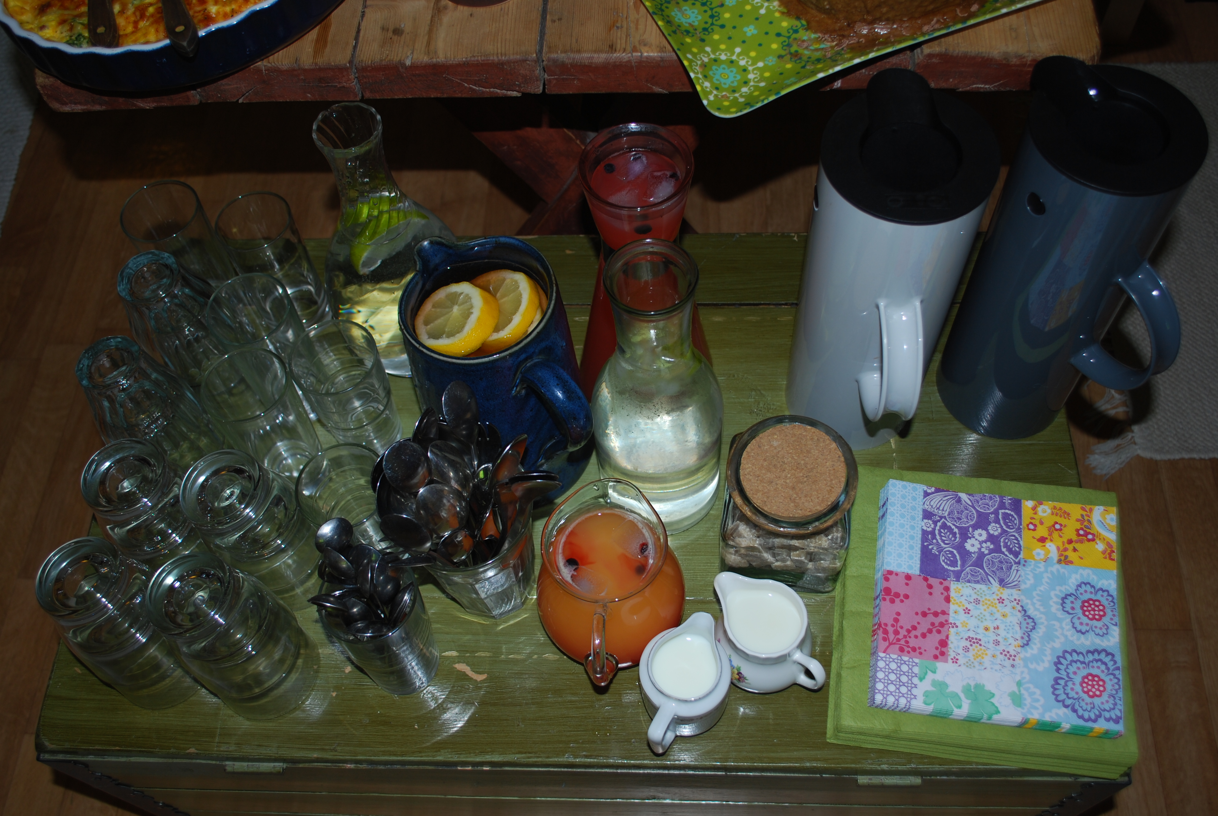 Hva gjør man når man får en ny god nabo som heter Mari, når begge naboene har bursdag i løpet av et par uker, når det snart er midtsommer, når det endelig har «landa» med jobb, når sola skinner og det snart er ferie..? Jo, da åpner man kafè! Med deilige kaker, valgfri kaffe, to grønne hager, med gode venner og naboer som kafègjester. Det var koselig det!