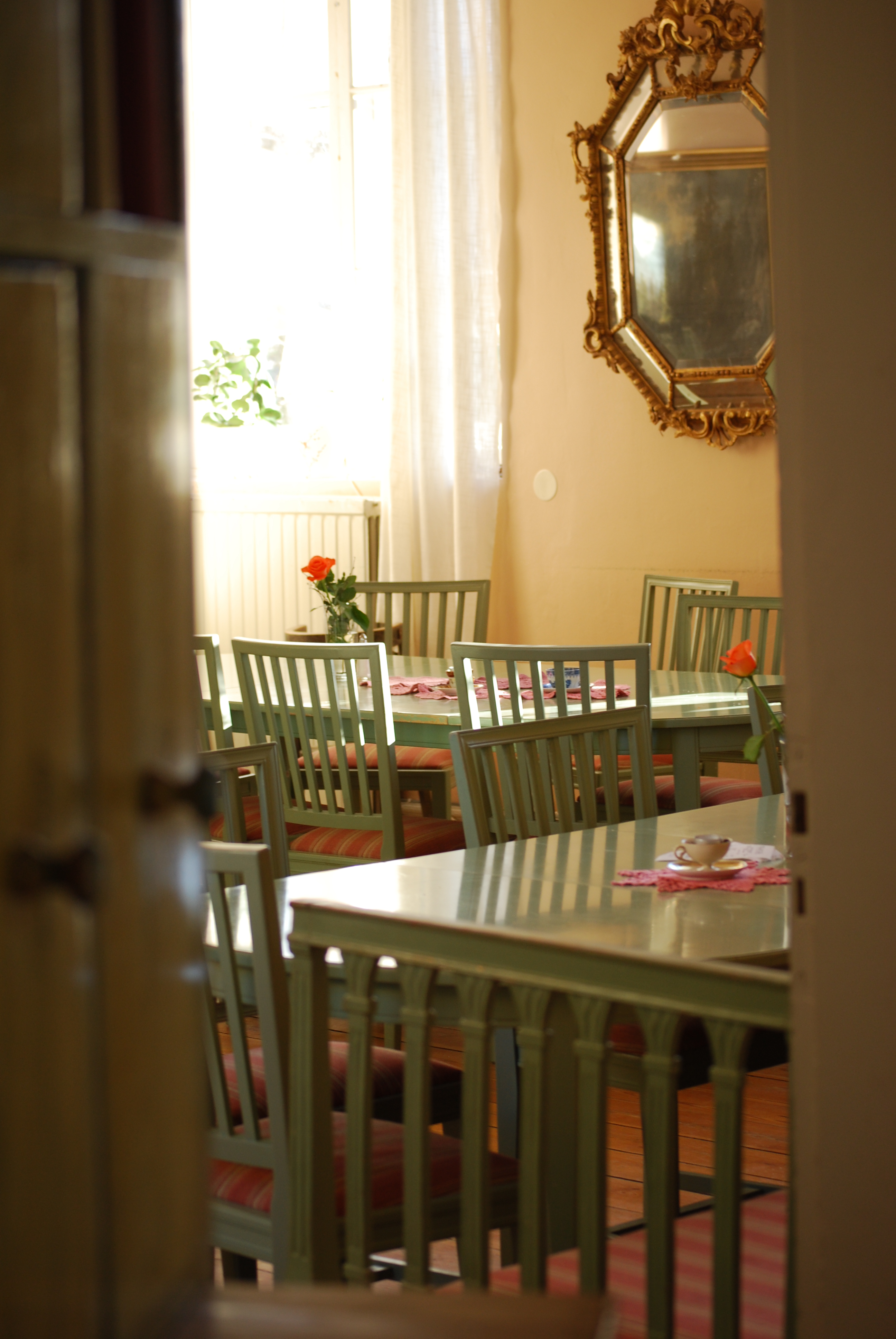 Nya Slottet Bjarka-Saby er faktisk et slott, og er vel mest kjent som stedet Peter Halldorf har bygd opp. Dette er et vakkert sted, ikke så langt fra Linkôping i Sverige. Jeg var der en helg for noen år siden sammen med Ingunn, på høstmøte for ungdom. Ble helt betatt av Slottskafèen, som ga like gode estetiske som smakfulle opplevelser. Det er laget en bok om maten på Bjarka-Saby, som heter «Mat ar karlek». En kokebok med vakre bilder og tekster fra stedet. Den boka ble med hjem til Oslo, gitt. Første møte med Bjarka-Saby innebar turer i kald høstluft, vassing i tørt løv blant eiketrærne, tidebønnsliv, rosehage, fantastisk konsert med Maria Solheim, kloke ord av Peter Halldorf, Ylva Eggehorn og andre, nysgjerring utforsking av slottets kriker og kroker, og møte med en liten spissmus…Hit vil jeg dra tilbake på retreat en gang.