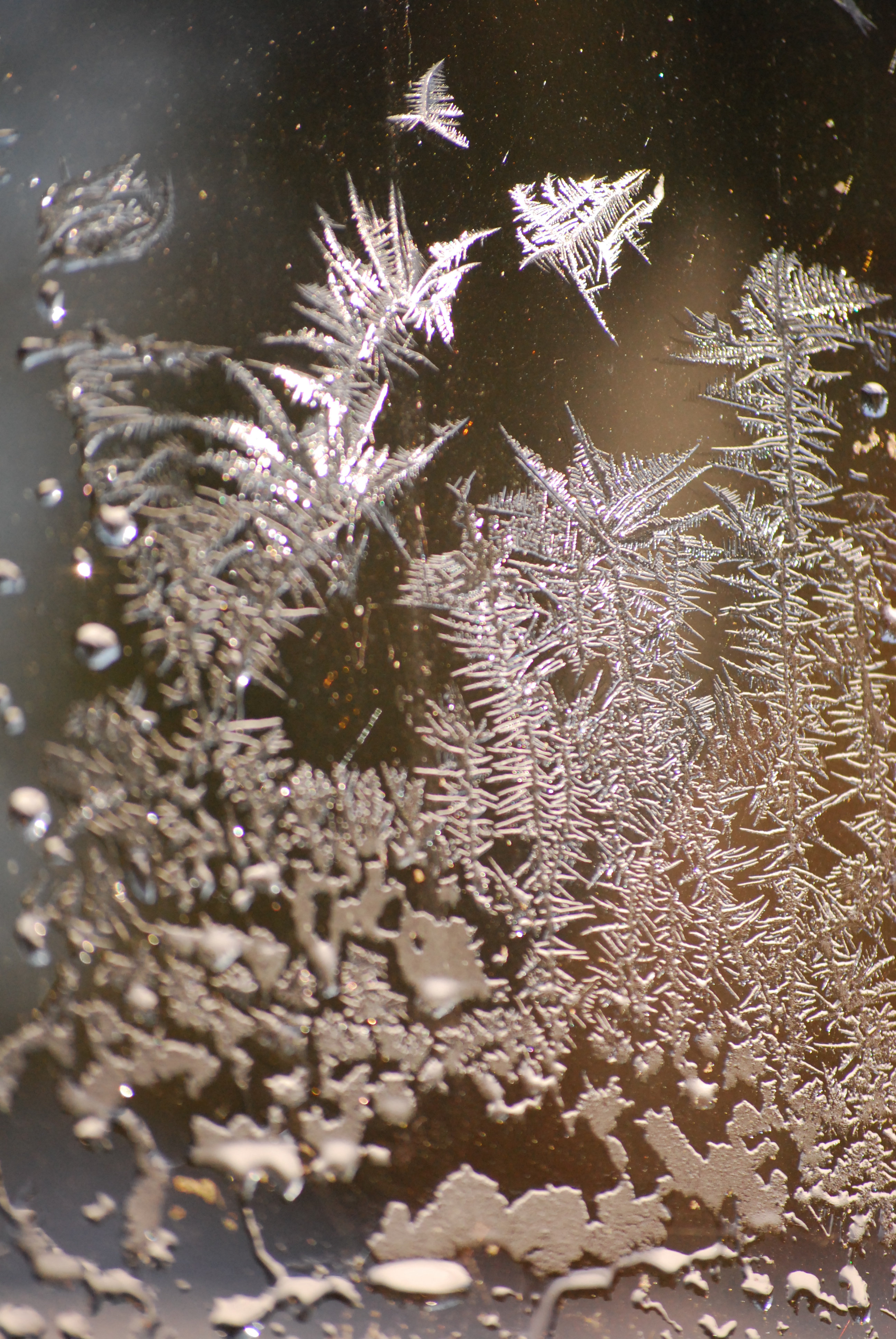 Her var det iskrystaller på innsiden av vinduet på Gamlehuset. Som så smått begynte å smelte. Det ble jo kunst.