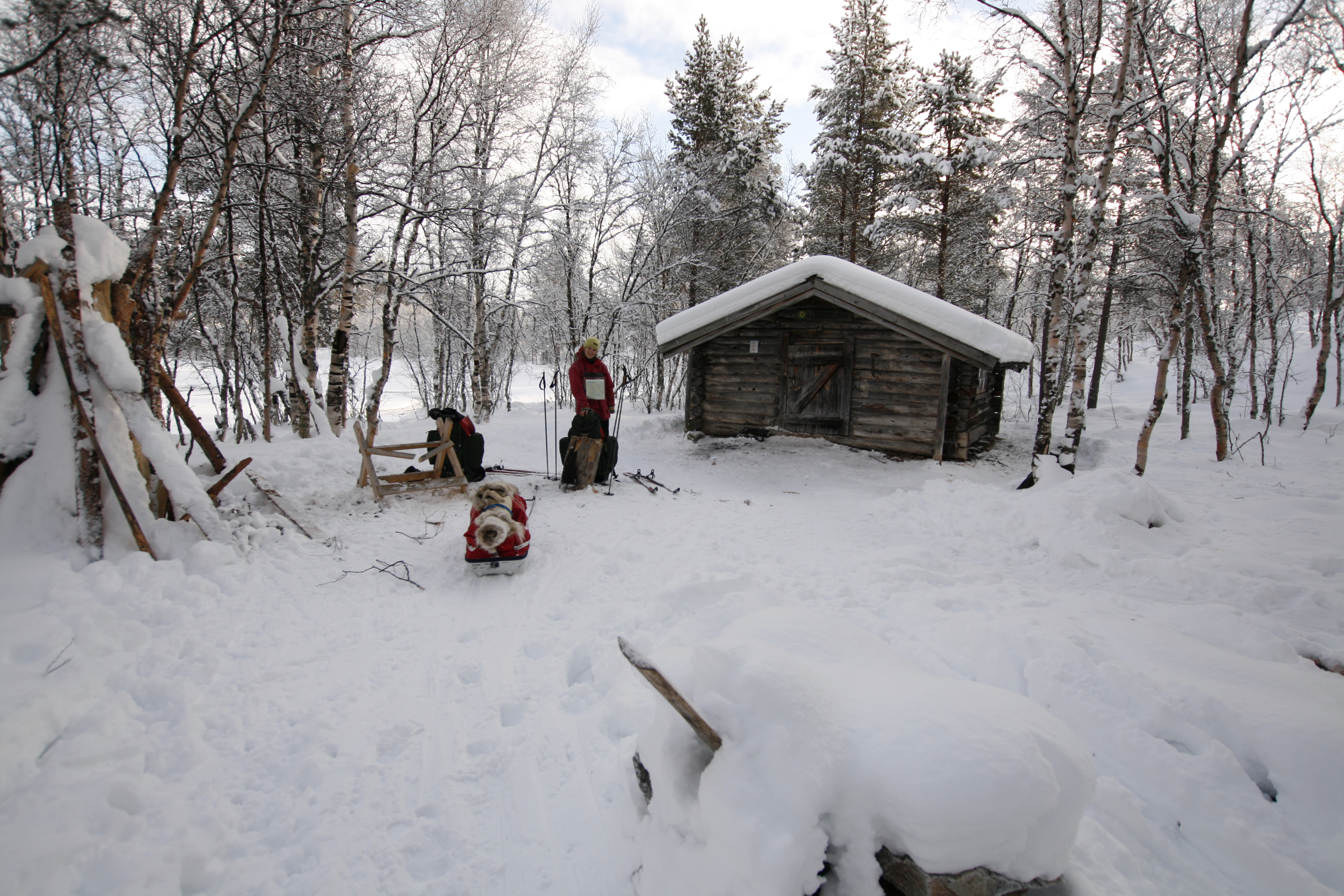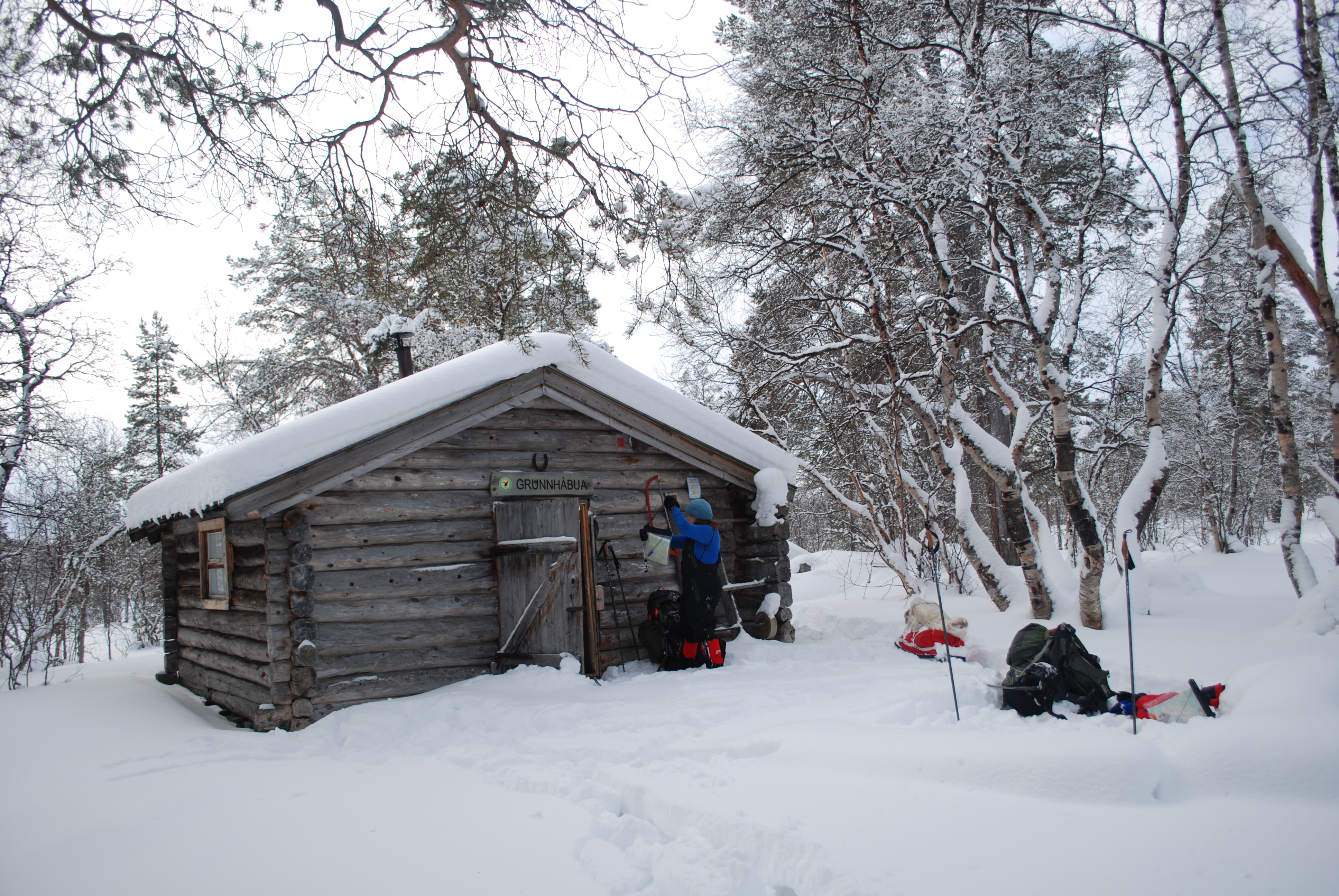 Turen startet på Langen ved nordenden av Femunden og vi trasket noen dager i sukkersnøen og furuskogen, ikke veldig langt. Overnattet i telt, men var innom noen av de åpne koiene til Statskog; Lorthølbua og Grunnhåbua. Skikkelig fine koier, som tidligere har blitt brukt av tømmerfløtere langs vassdragene. Underveis møtte vi flere hundespann som trente til Femundløpet. Tilbake til Synnervika, og turen ble avrundet med en dag på Rørosmartnan. Kjempegøy!