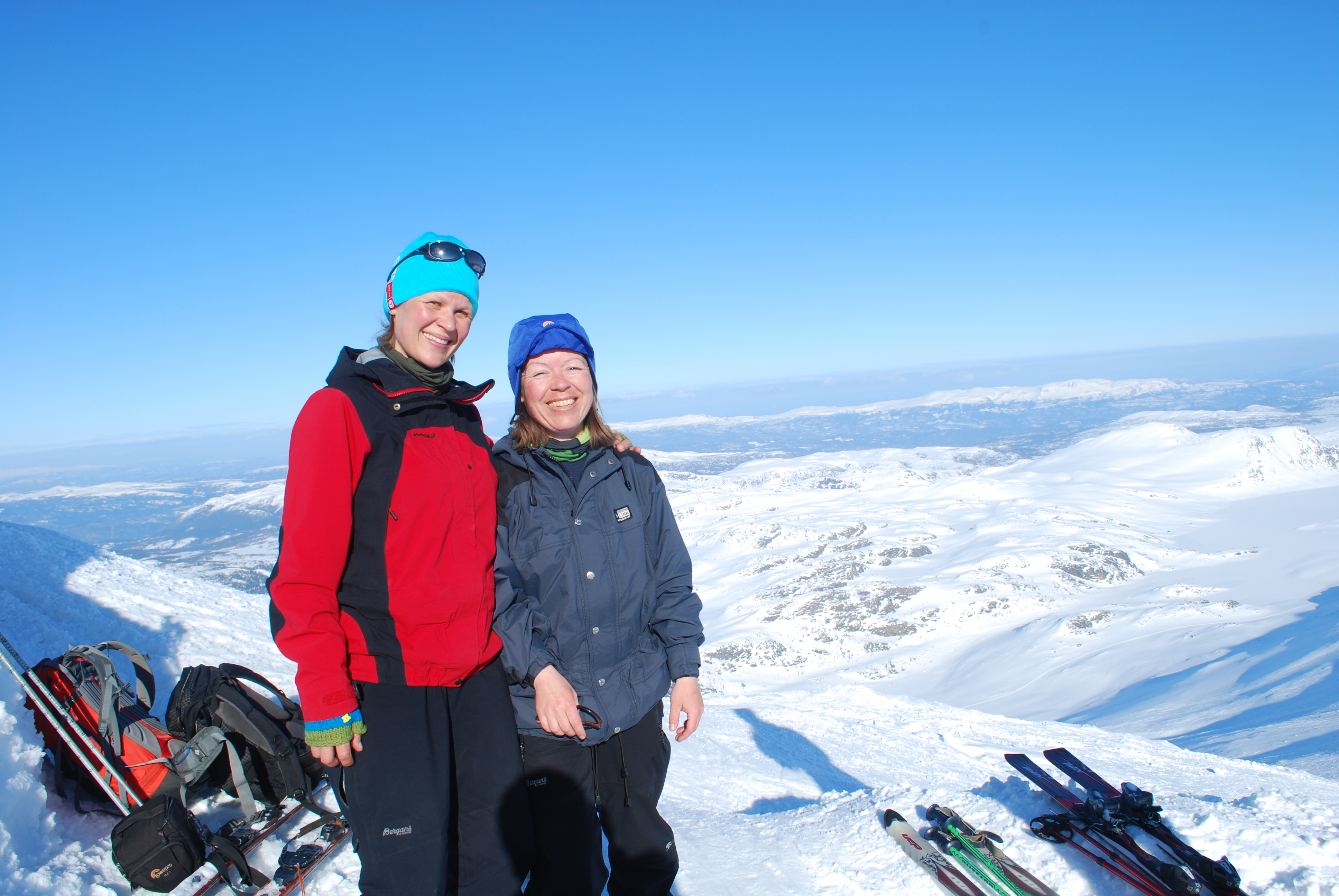 Jada, det går an. Å gå til Gaustatoppen rett fra hyttedøra. Torunn og jeg er de første som har gått fra Kvileroe til Gaustatoppen på ski. En varm aprildag i fjellet og vi brukte dagen. Gikk over Råen, mellom Store og Lille Gaustakne og langs ryggen til toppen som ruver 1883 moh. Da vi kom på topps var det nesten vindstille. Så var det å suse ned igjen gjennom Telemarksfjellsidene.
