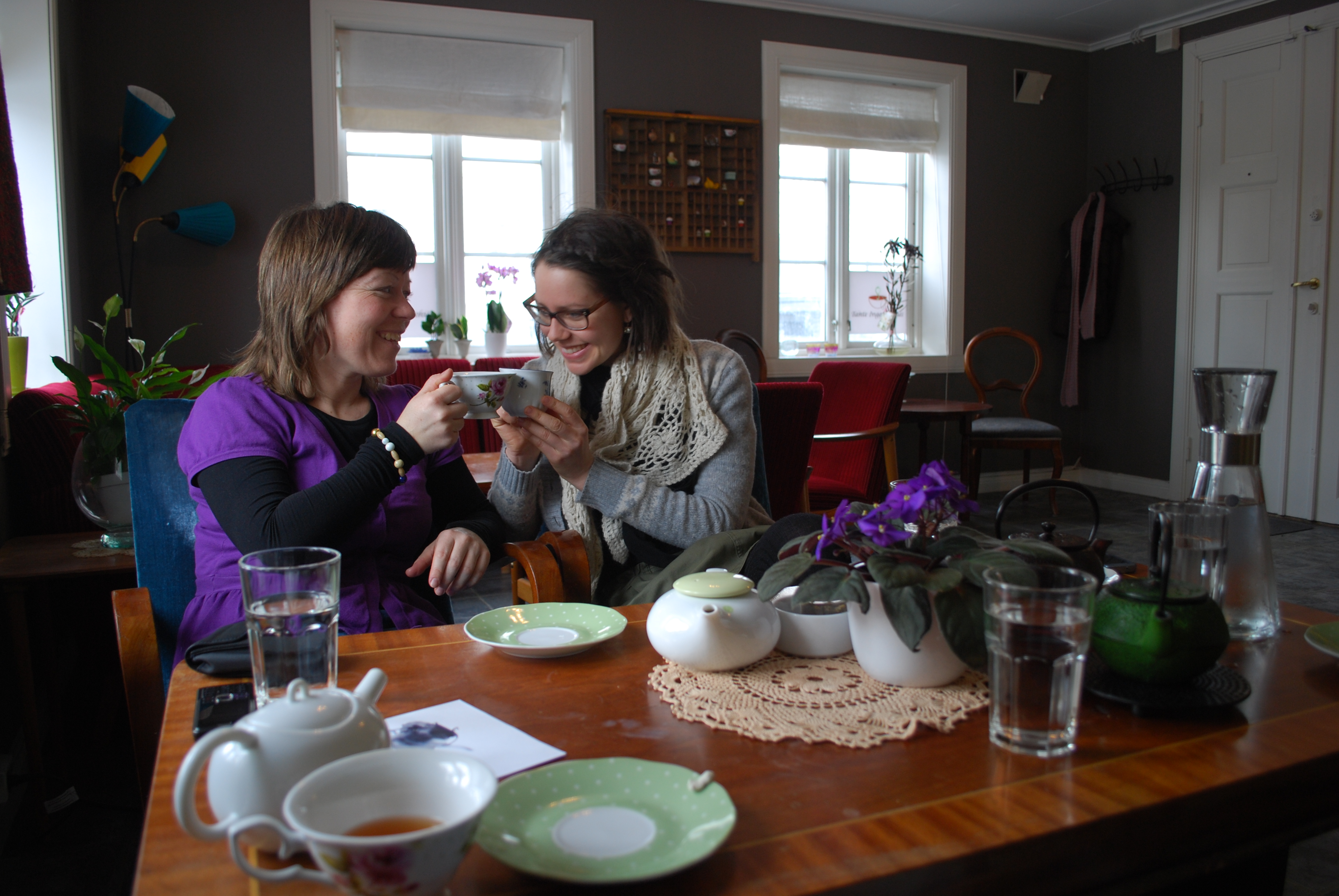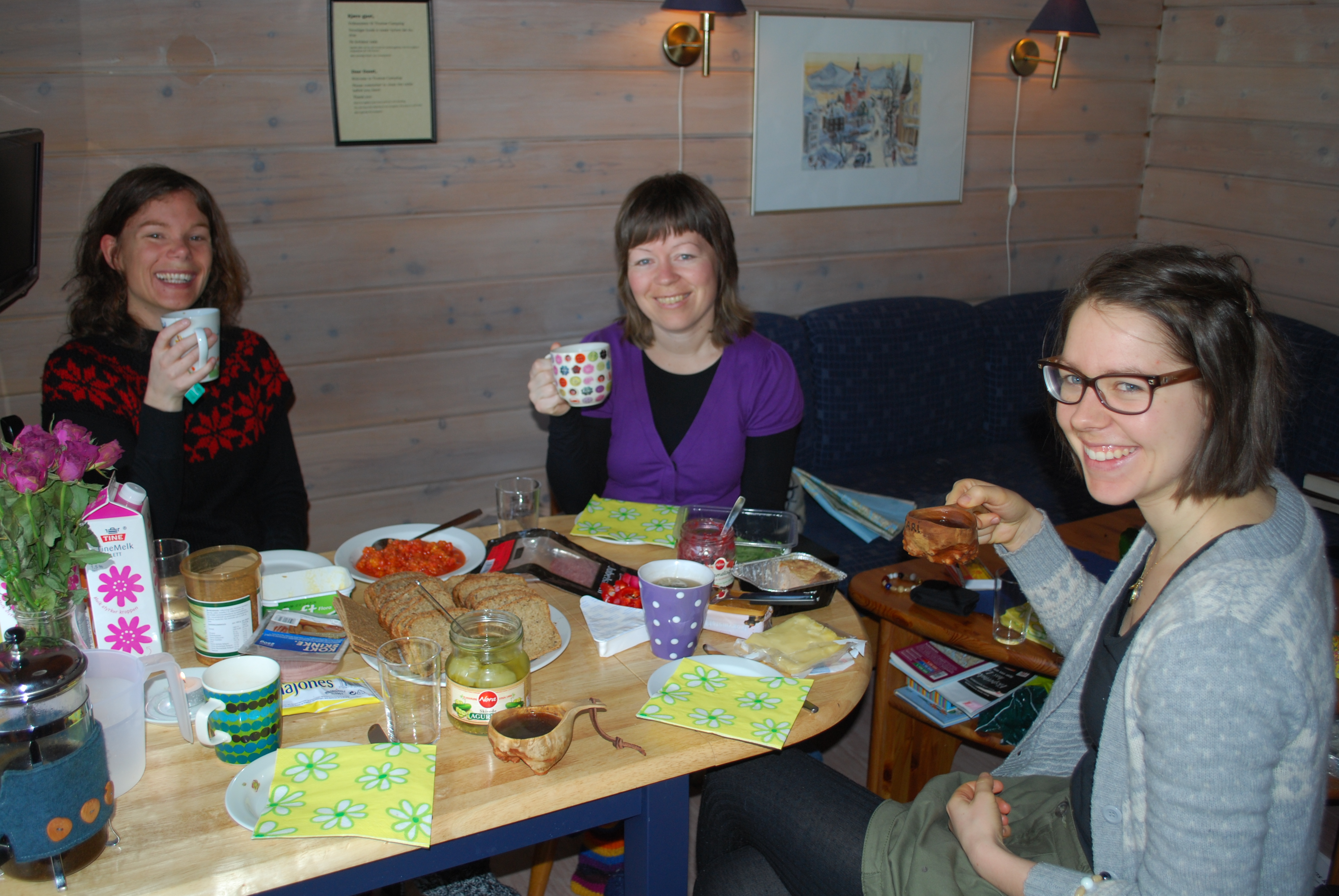 TT-gjengen, Team Tromsø, på en måneds diakonipraksis. Fire jenter på hytte 21 på Tromsdalen Camping; Kristin, Torunn, Mari og jeg. Selve praksisen er et kapittel for seg, men Tromsø er likevel Tromsø med sine mange perler. De røde stolene på biblioteket, kaffe på Aunegården og te hos Tante Inger er blant de klare favorittene. Ruskende vind over Tromsøybrua, utsikten til Tromsdalstinden og bålkos i lavvoen inni dalen….Fellesskap på hytta, fiskesuppe og påskeegg….Møter med nydelige mennesker; Bjørnar som tok oss med på tur, serverte oss deilige molter, og til og med lagde trekopper til Mari-ene. «Den lille røde», som ga pusterom og oppmuntring…Ble vi bedre diakoner av et Tromsø-opphold? Tja…vi lærte i alle fall mye om veiledning!